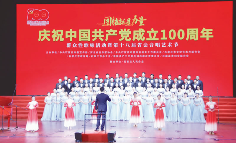 6月15-17日,市人民會(huì)堂內(nèi)歌聲嘹亮,由中共石家莊市委宣傳部、河北省音樂家協(xié)會(huì)等8部門聯(lián)合舉辦的“慶祝中國共產(chǎn)黨成立100周年群眾性歌詠活動(dòng)暨‘團(tuán)結(jié)就是力量’第十八屆省會(huì)合唱藝術(shù)節(jié)隆重舉行。來自各機(jī)關(guān)單位和企業(yè)的68支參賽隊(duì)伍在這里進(jìn)行了精彩角逐,用高昂激蕩的歌聲謳歌黨的偉大成就,用真摯的情感歌頌祖國。